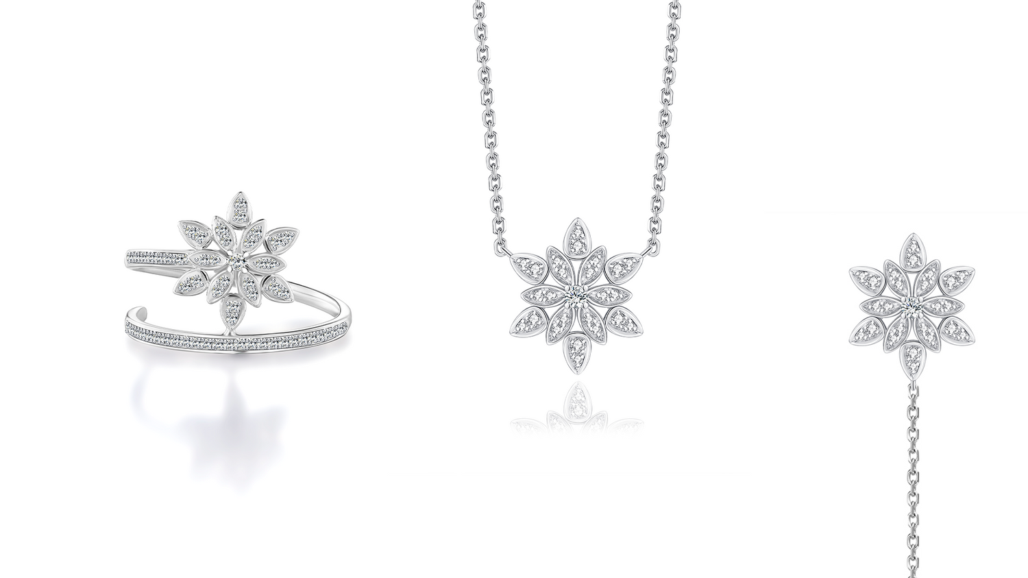 Conjunto de collar, pendientes y anillo en oro blanco de 18 quilates
