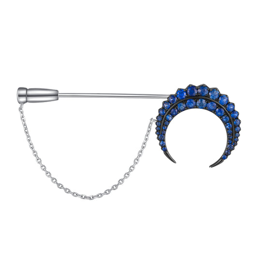 Broche en forma de luna de oro negro de 18 quilates adornado con deslumbrantes zafiros