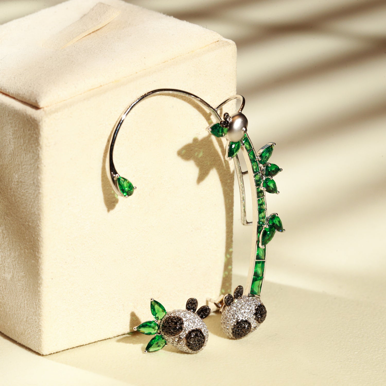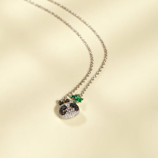 Juego de oro blanco de 18 quilates inspirado en el preciado tesoro nacional de China: el oso panda.